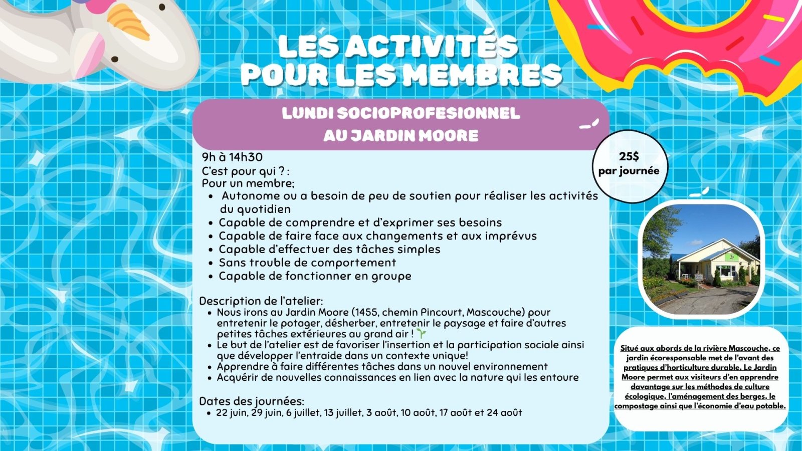 200,00 $Lundi socioprofesionnel au Jardin Moore (tarif à la journée)