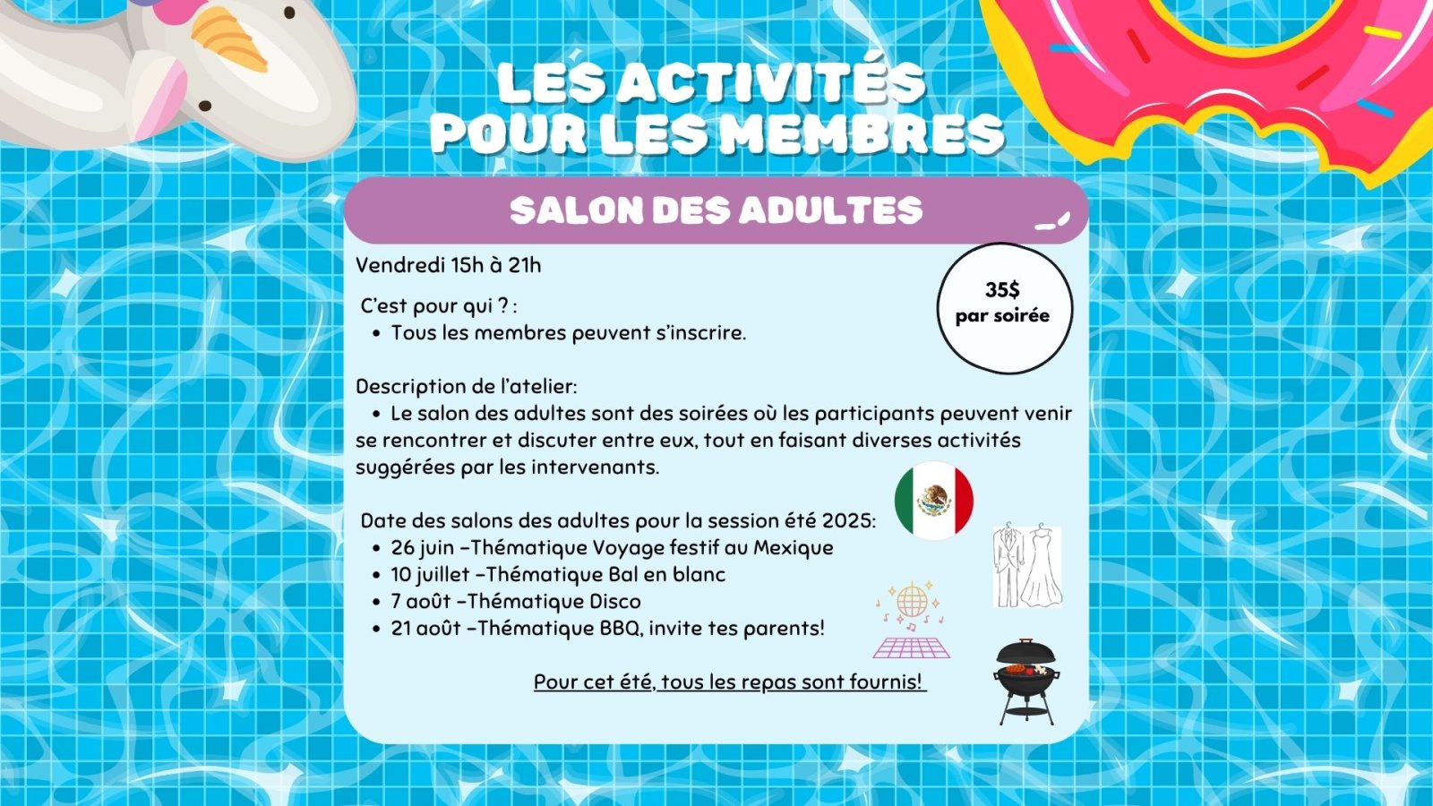 140,00 $Salon des adultes (tarif à la soirée)