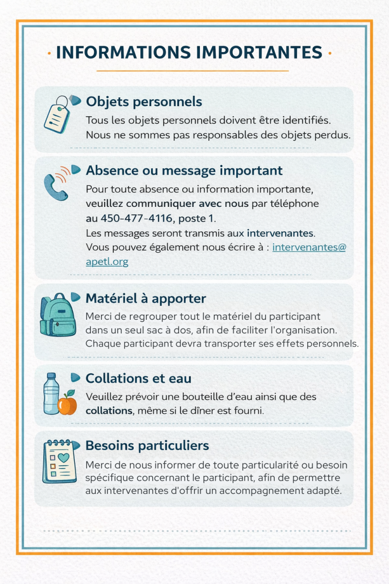 Merci de compléter ce formulaire afin d’inscrire le participant à la session d’été 2026, s’il vous plaît.