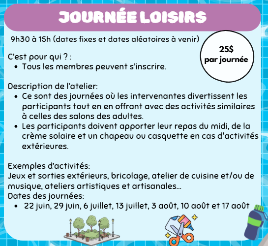 Journée loisirs (tarif à la journée)