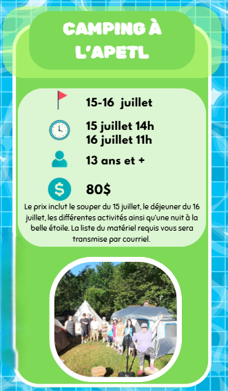15,00 $Ciné-parc à l'APETL (tarif deux personnes)